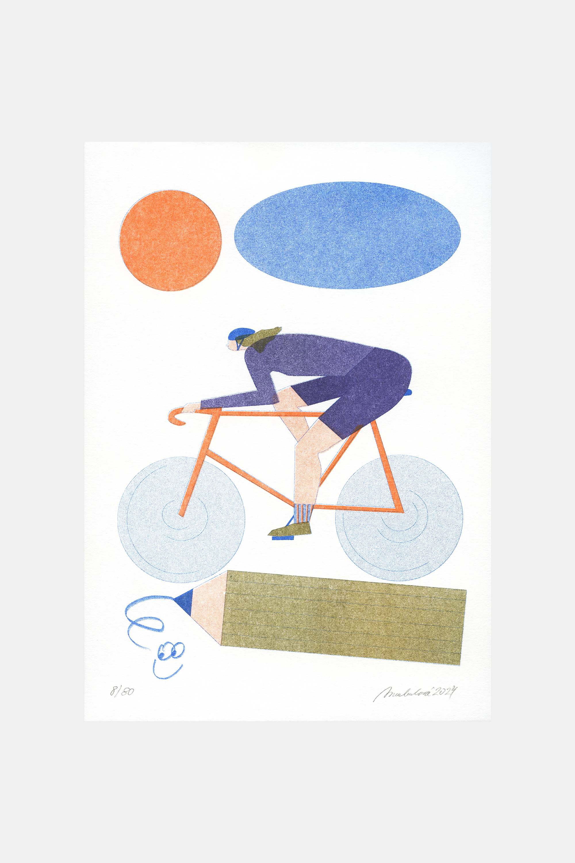 V naší cyklodílně se občas přes záplavu kol nedá pomalu ani otočit, ale to neznamená, že bychom si nenašli místo pro umění! Už nějaký čas můžete v dílně kromě servisu, kurzů oprav, pujčovny kol a nářadí zakoupit piece of art do vašich domovů. Naše polička v různých obměnách nabízí výběr z převážně lokální tvůrčí produkce. Nyní si můžete přijít prohlédnout a případně zakoupit tisky od:
